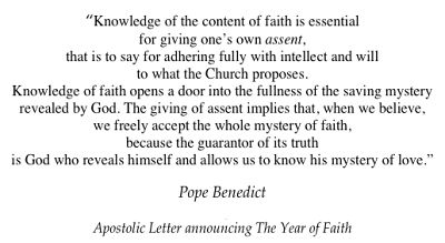 As I reflect on the Apostolic Letter entitled, “Motu Proprio Data” of the Supreme Pontiff Benedict XVI for the indiction of the Year of Faith which is due to begin on October 11, 2012 to November 24, 2013, I am reminded that the “door of faith” (Acts 14:27) is always open for each one of us.